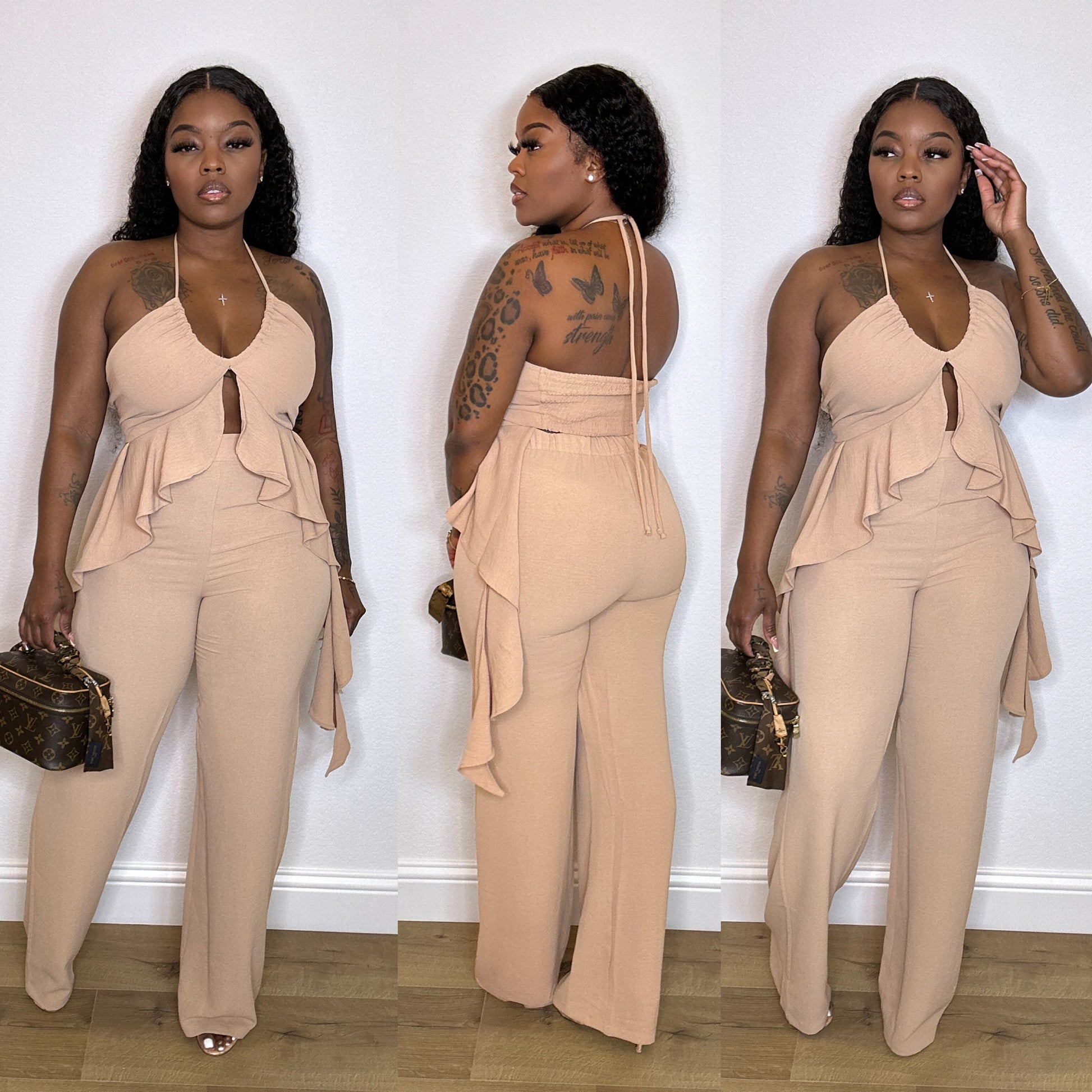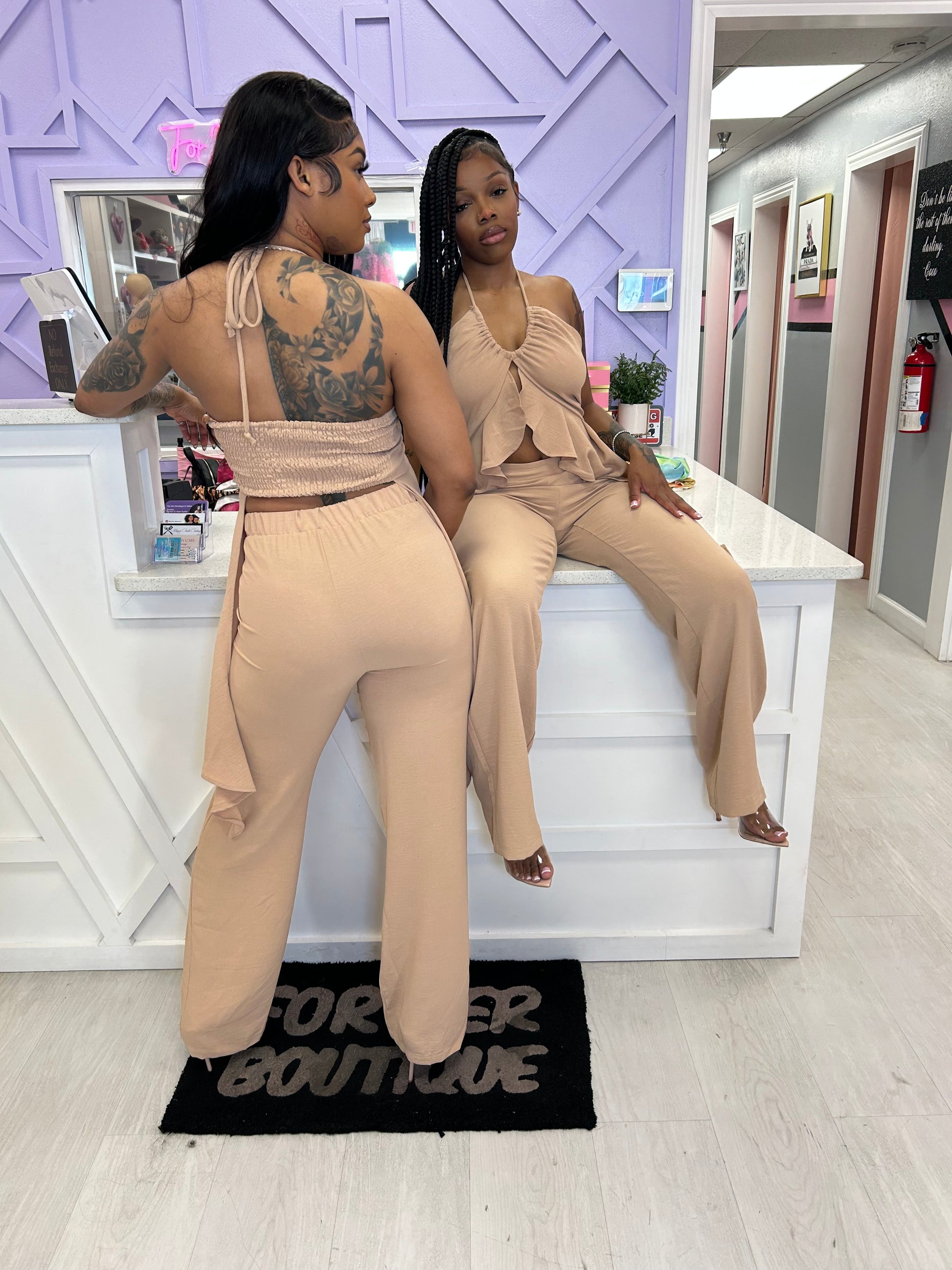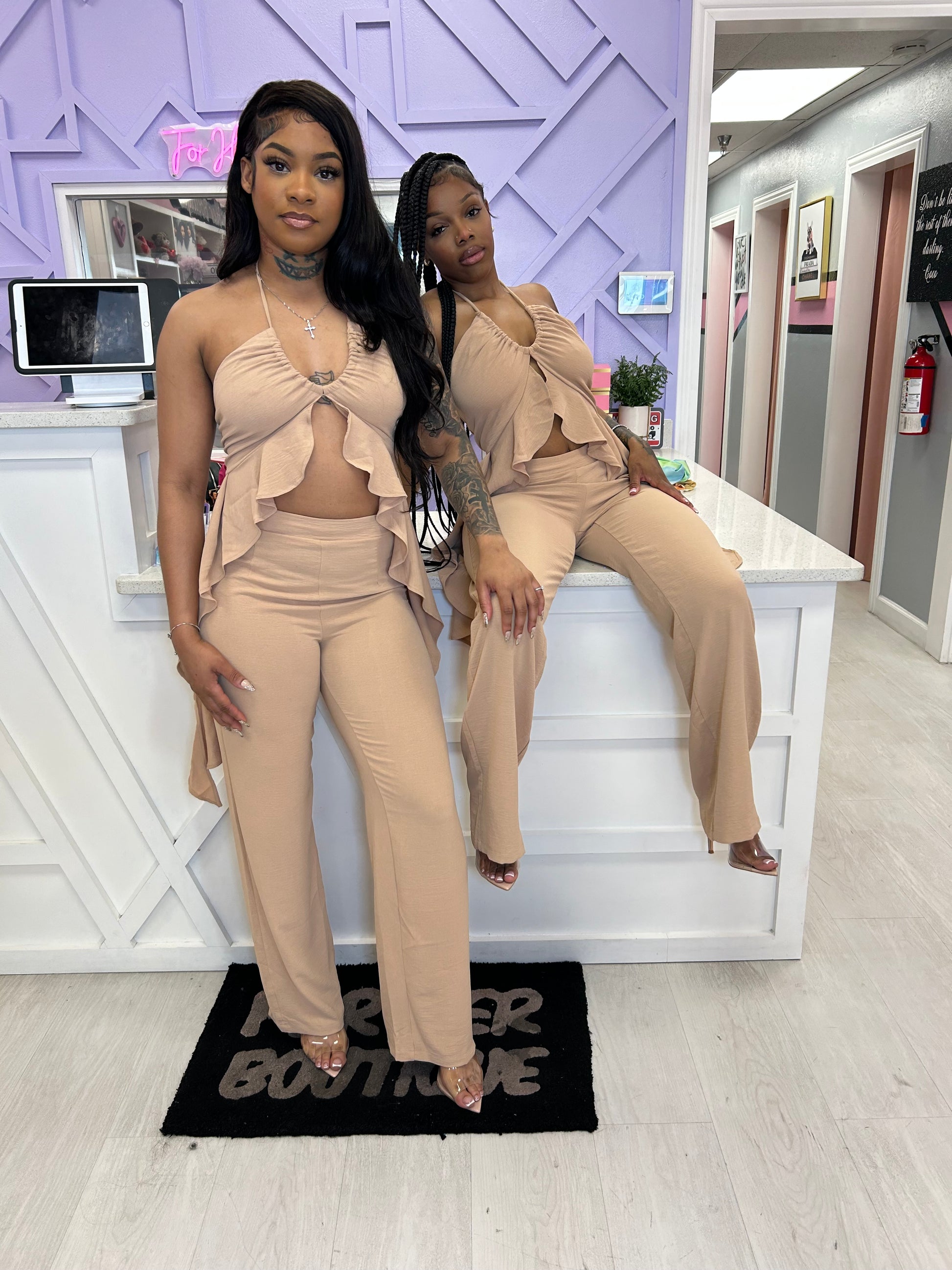 Linen like pants set.