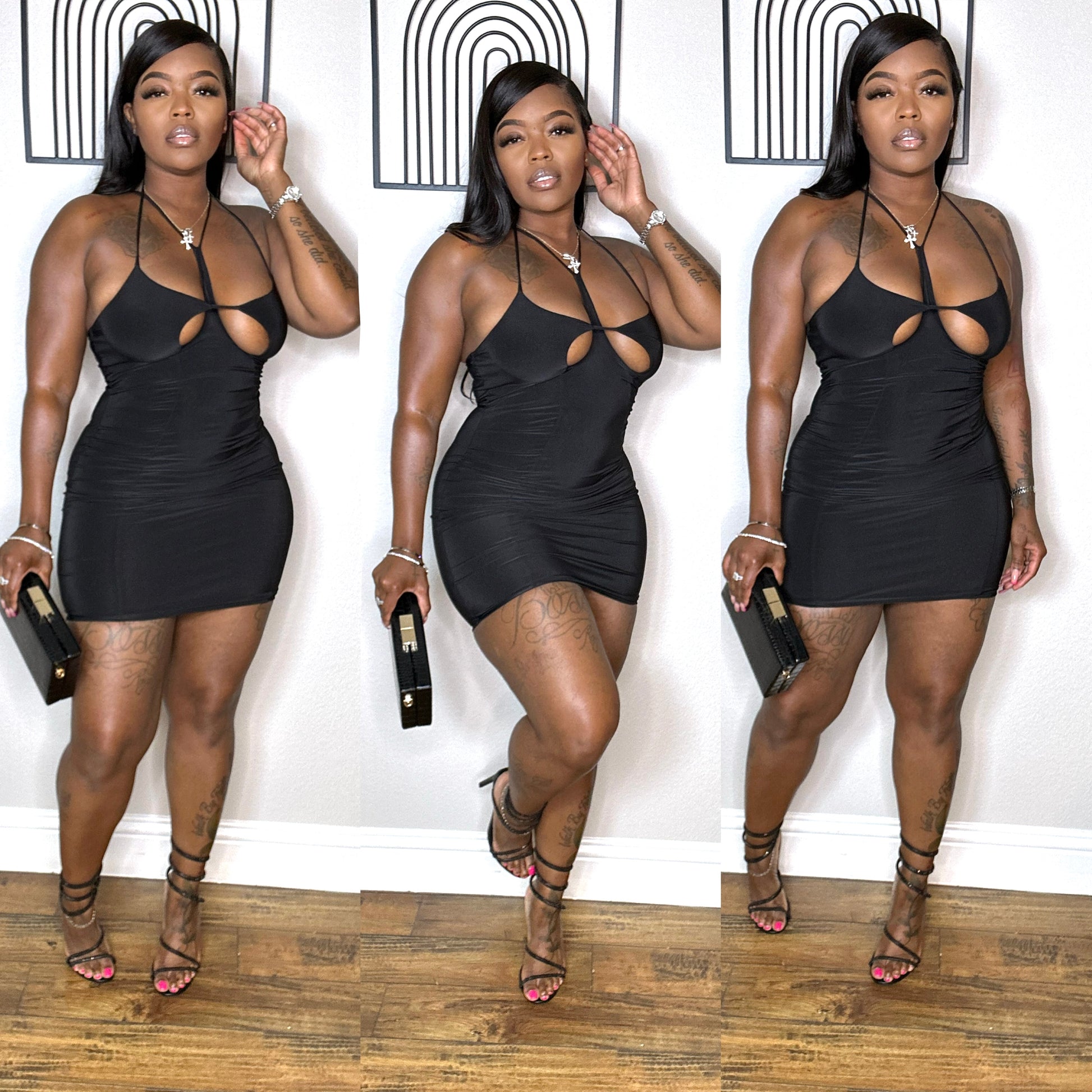 What a sexy dress. Very snug fit, great stretch. Perfect for a night out. Model is wearing a size medium.